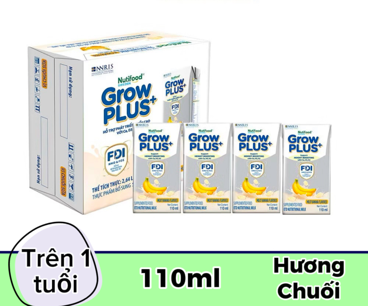 Sữa bột pha sẵn Nutifood Growplus+ Bạc 110ml hương chuối sữa ( 1Thùng 24 hộp )